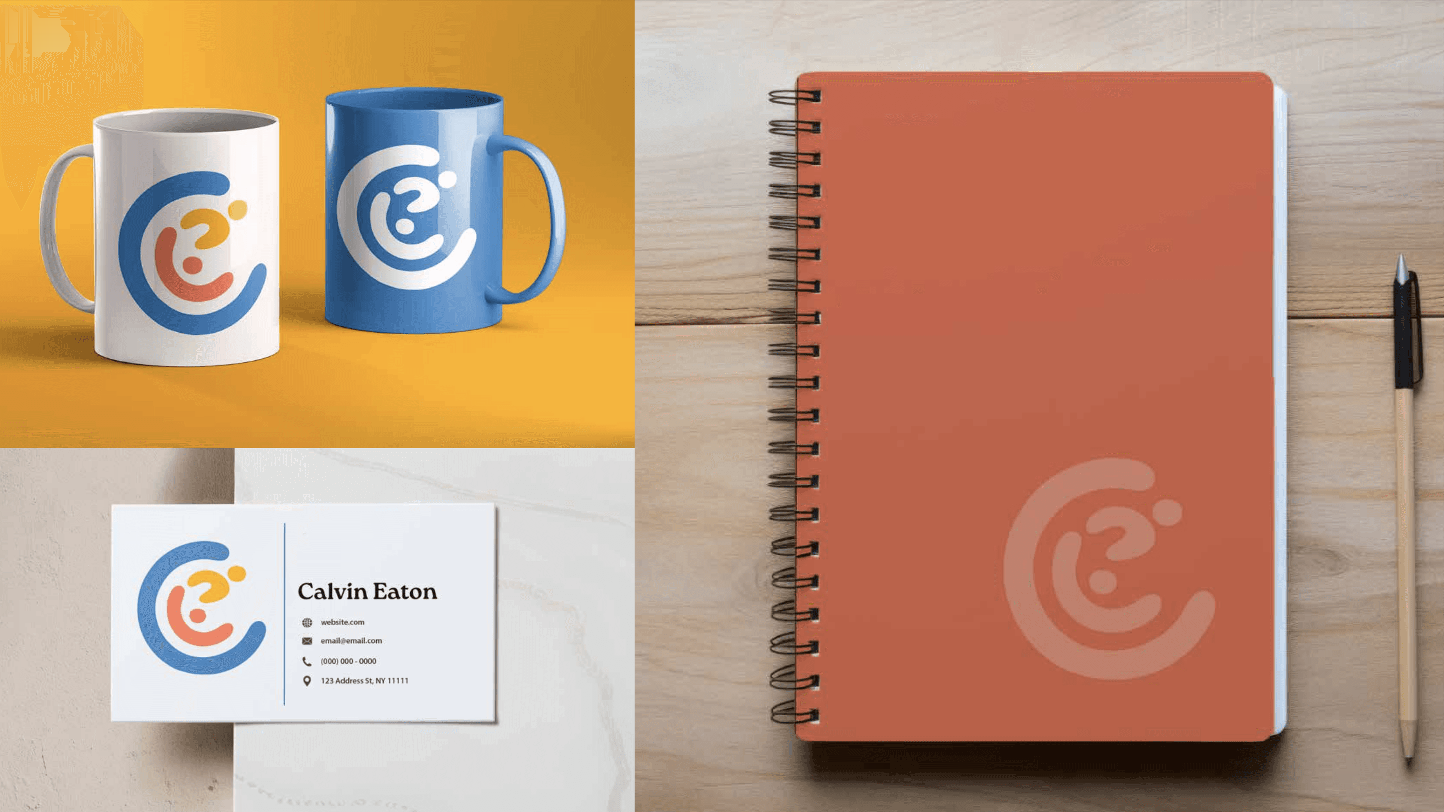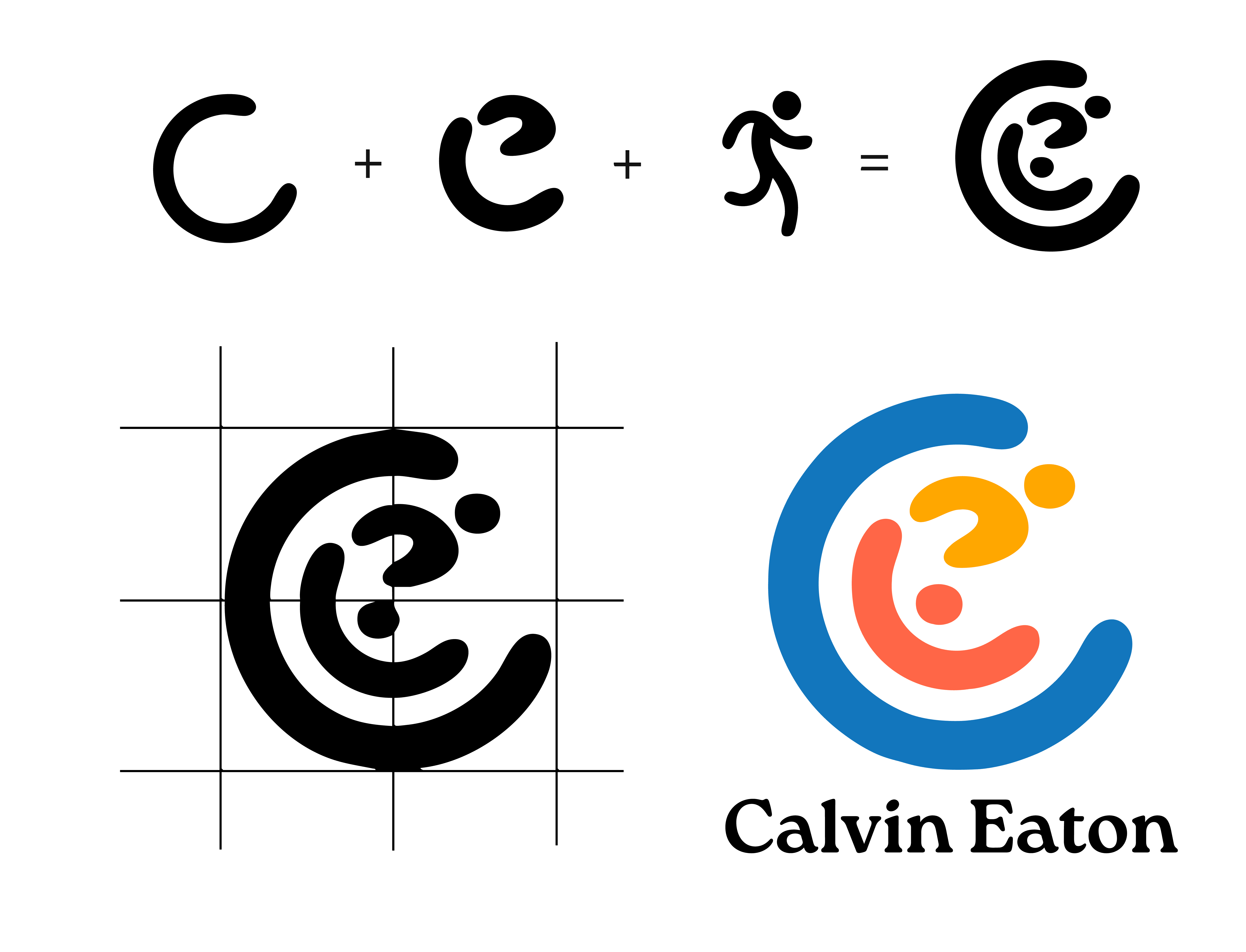 This logo captures Calvin's role as a facilitator, connector, and creative problem-solver. The abstract shapes suggest people in relationship who are communicating, collaborating, and supporting one another. There is movement, openness, and balance, all held within a soft ‘C’ form that subtly anchors the brand, with the “e” on the inside for “Eaton”.