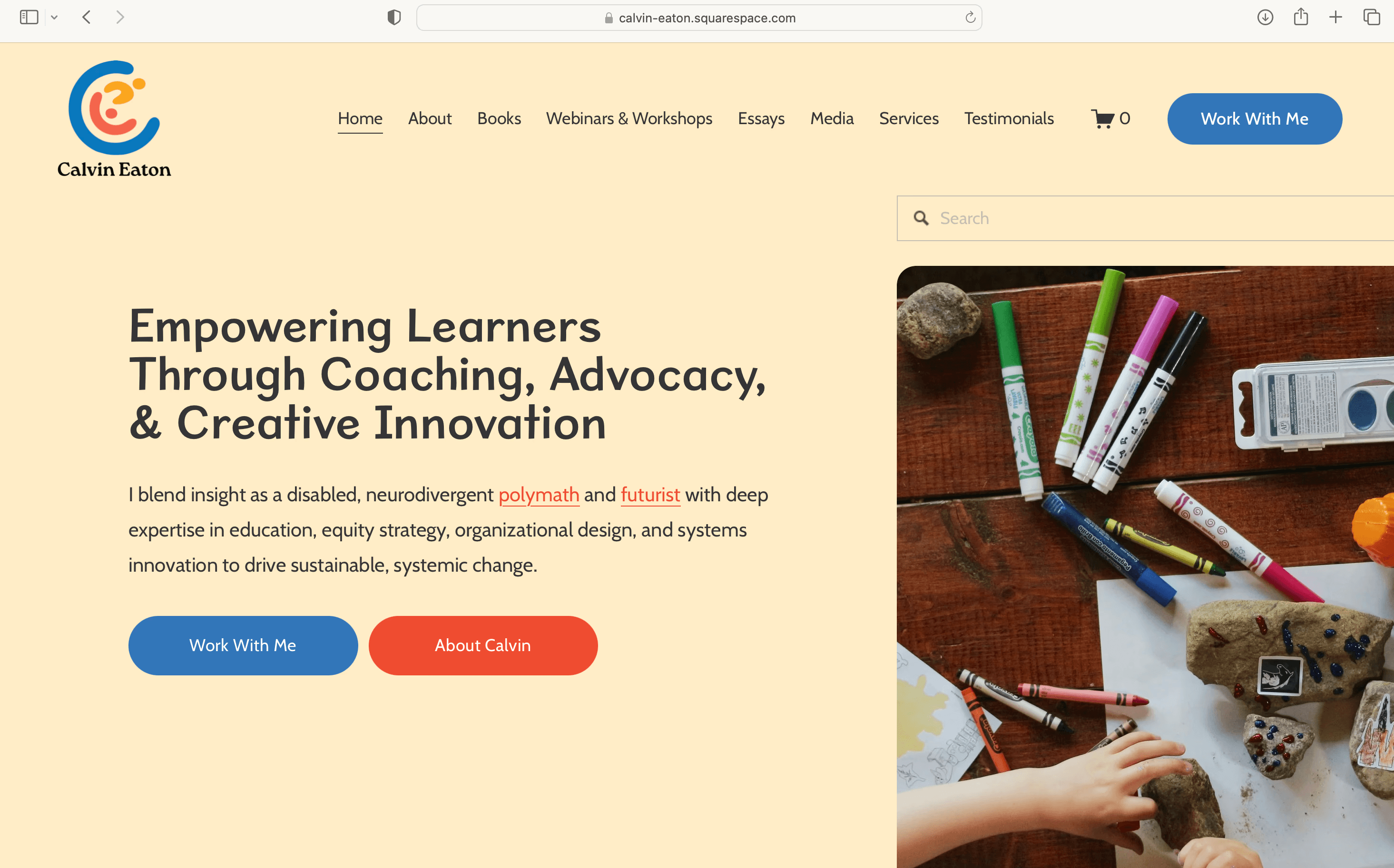 Calvin Eaton’s brand strategically emphasizes connection, through a human-centered, playful, and abstract aesthetic. The design feels creative and fluid, reflecting diverse thinking styles and resonating with educators, creative professionals, parents, students, and clients seeking authentic engagement.
