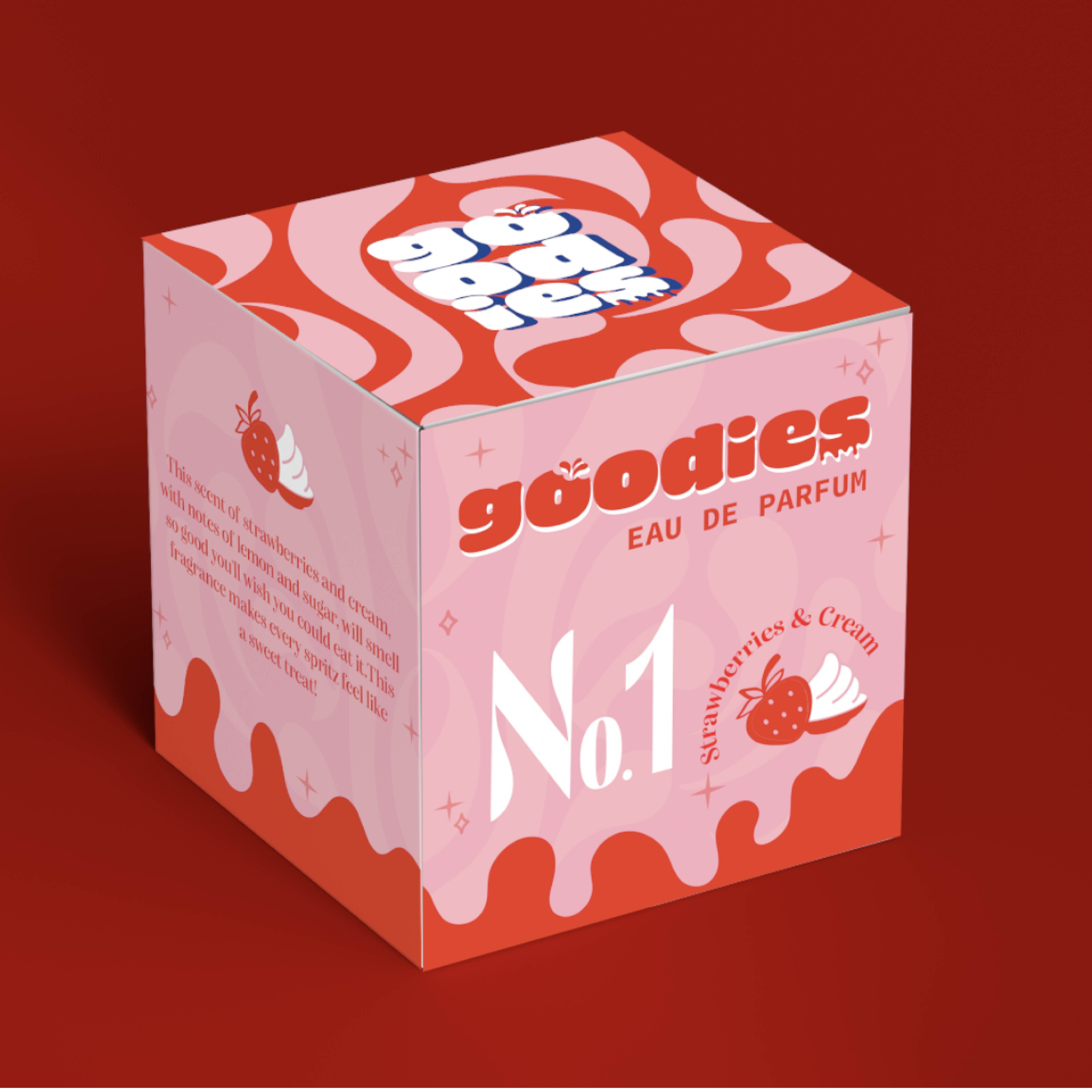 Goodies is a fragrance brand identity that challenges the boundaries between indulgence and scent. Born from the idea that perfume should be as delightful as your favorite treat, Goodies creates fragrances that smell good enough to eat, from tart lemon candies to warm vanilla and fresh berries. The goal was to blur the boundaries between food and fragrance packaging while maintaining sophistication.